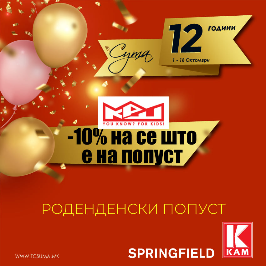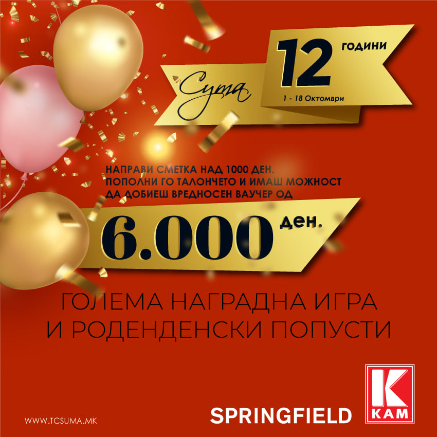 За секоја сметка над 1000 ден. во некој од локалите добивате талонче за учество во наградна игра. Учествувајте и освојте вредносен ваучер од 3000 ден. кој може да го искористите во Springfield и вредносен ваучер од 3000 ден. кој може да го искористите во КАМ маркет!
